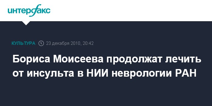 Бориса Моисеева продолжат лечить от инсульта в НИИ неврологии РАН