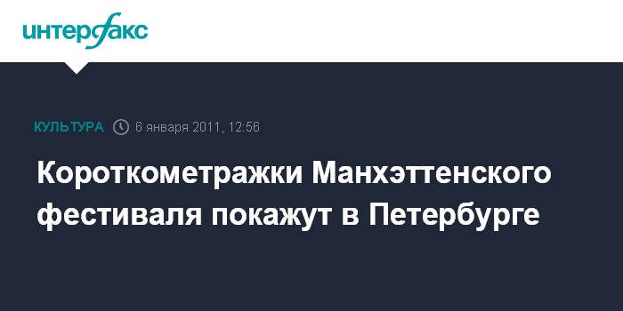 Санкт-Петербург. 6 января. INTERFAX.RU - Показы конкурсной программы 2010 года известного Манхэттенского фестиваля короткометражного кино (The Manhattan Short) пройдут во время новогодних каникул в Петербурге, сообщила пресс-служба киноцентра "Родина".