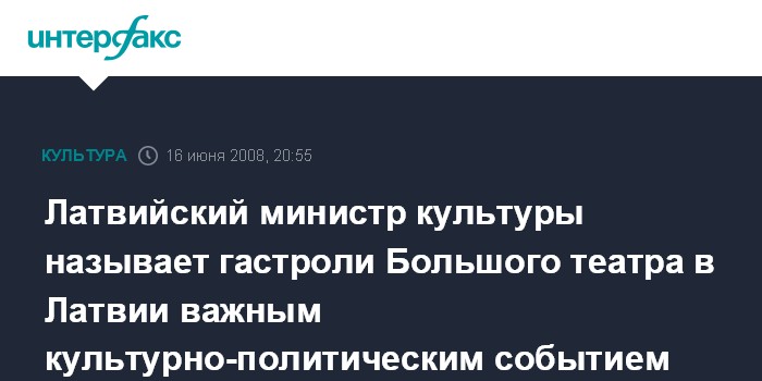 Латвийский министр культуры называет гастроли Большого театра в Латвии важным культурно-политическим событием