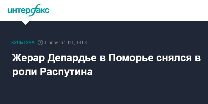 Архангельск. 6 апреля. INTERFAX.RU - В музее "Малые Карелы" Архангельской области завершились съемки эпизодов фильма "Распутин" с Жераром Депардье в главной роли.