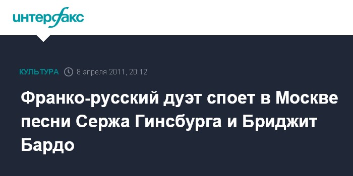 Франко-русский дуэт споет в Москве песни Сержа Гинсбурга и Бриджит Бардо
