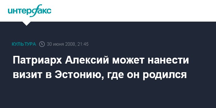 Таллин. 30 июня. ИНТЕРФАКС - Президент Эстонии Тоомас Хендрик Ильвес обсудил в понедельник с патриархом Московским и всея Руси Алексием возможность его визита в Эстонию.