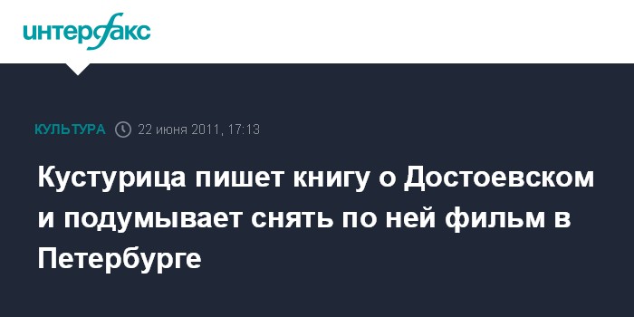 Санкт-Петербург. 22 июня. INTERFAX.RU - Сербский режиссер и музыкант Эмир Кустурица пишет книгу о Достоевском "Дорогой мой Федор" и не исключает возможность снять по ней фильм в Петербурге.