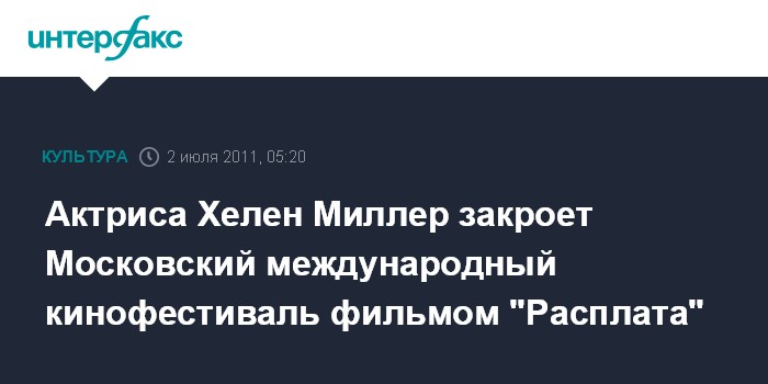 Москва. 2 июля. ИНТЕРФАКС - Британская актриса, обладательница "Оскара" Хелен Миррен представит московской публике фильм "Расплата", который станет фильмом закрытия 33-го Московского международного кинофестиваля (ММКФ), сообщил "Интерфаксу" директор ММКФ по связям с общественностью Петр Шепотинник.