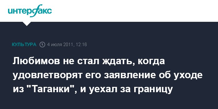 Любимов не стал ждать, когда удовлетворят его заявление об уходе из "Таганки", и уехал за границу