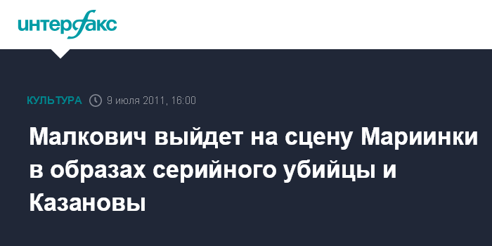 Малкович выйдет на сцену Мариинки в образах серийного убийцы и Казановы