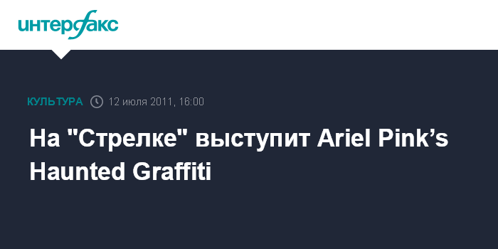 Москва. 12 июля. INTERFAX.RU – Тридцатого июля на "Стрелке" пройдет второй фестивальный день Strelka Sound. В этот день во дворе "Стрелки" выступят DJs Simple Symmetry (начало в 17:30), DJ Mark Schedrin (18:00). Затем на сцене отыграет свой дебютный альбом группа Pompeya (и это будет их единственное выступление в Москве этим летом), начало в 19:00. Pompeya сменит DJ Taras 3000 (20:00), а затем в 21:00 начнется выступление Ariel Pink’s Haunted Graffiti, коллектива, созданного Эриелем Пинком и считающегося критиками одной из самых влиятельных экспериментальных групп. Это будет первое выступление группы в России.