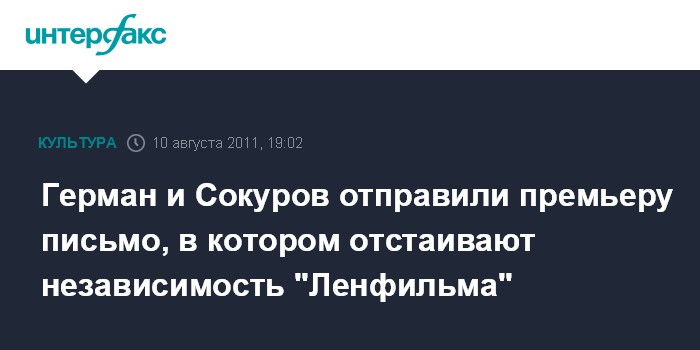 Герман и Сокуров написали открытое письмо председателю правительства РФ Владимиру Путину, в котором высказали недовольство сложившейся вокруг киностудии ситуацией.