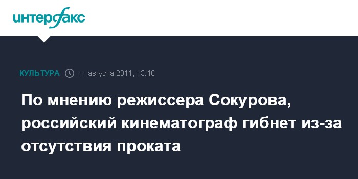 По мнению режиссера Сокурова, российский кинематограф гибнет из-за отсутствия проката