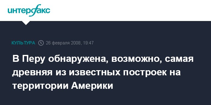 Лима. 26 февраля. INTERFAX.RU - Группа перуанских и германских археологов объявила об обнаружении площади и храмового комплекса, которые были построены 5,5 тыс. лет назад, сообщает перуанская газета "Комерсио".
