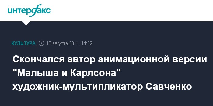 Скончался автор анимационной версии "Малыша и Карлсона" художник-мультипликатор Савченко