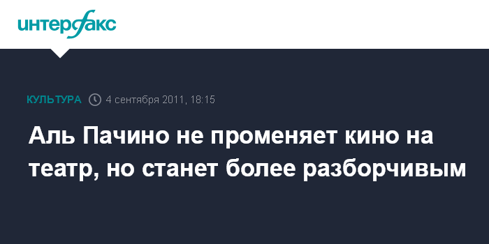 Аль Пачино не променяет кино на театр, но станет более разборчивым
