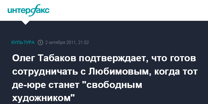 Олег Табаков подтверждает, что готов сотрудничать с Любимовым, когда тот де-юре станет "свободным художником"