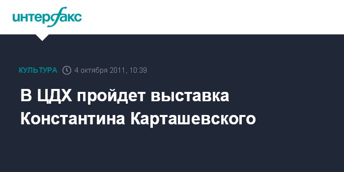 Москва. 4 октября. INTERFAX.RU – Выставка работ Константина Карташевского "Артефакты часть I" пройдет 4 октября в ЦДХ. На выставке представлена графика в авторской технике, скульптура, объекты и холсты.