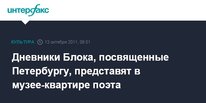 Санкт-Петербург. 13 октября. INTERFAX.RU - Личные дневники поэта, а также театральные афиши и предметы быта конца XIX - начала ХХ века, представят на выставке в музее-квартире Александра Блока.