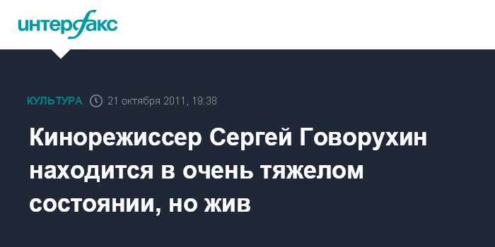 Москва. 21 октября. ИНТЕРФАКС - Гильдия кинорежиссеров России опровергла поступившую информацию о смерти кинорежиссера Сергея Говорухина.