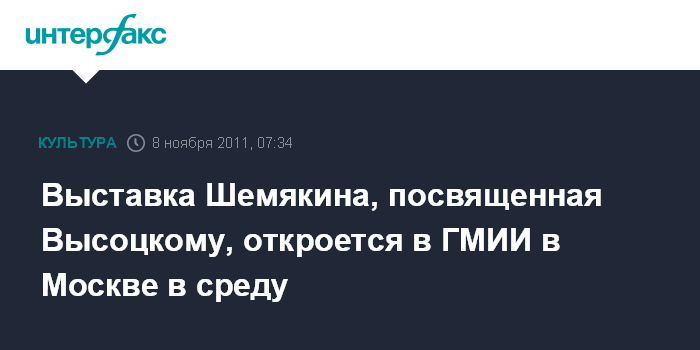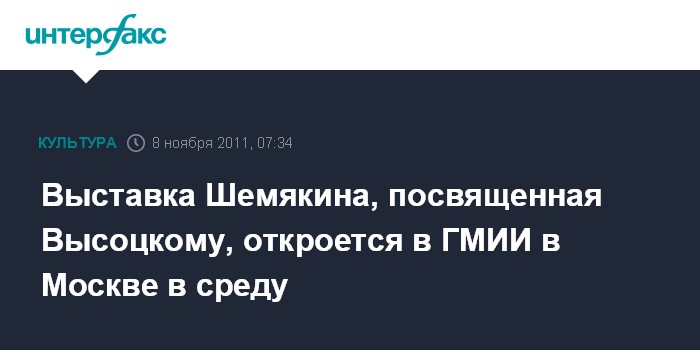 Москва. 8 ноября. ИНТЕРФАКС - Выставка "Шемякин. Высоцкий. Две судьбы" откроется в Государственном музее изобразительных искусств (ГМИИ) им. А.С.Пушкина в среду и будет приурочена к выходу книги Михаила Шемякина "Две судьбы", сообщил во вторник "Интерфаксу" художник М.Шемякин.