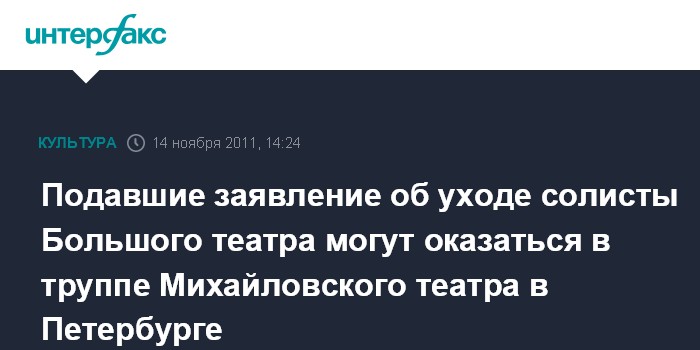 Подавшие заявление об уходе солисты Большого театра могут оказаться в труппе Михайловского театра в Петербурге