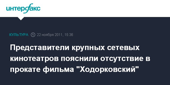 Москва. 22 ноября. INTERFAX.RU - Представители крупных сетевых кинотеатров по-разному мотивировали отсутствие в прокатном репертуаре документального фильма о Михаиле Ходорковского немецкого режиссера русского происхождения Кирилла Туши.