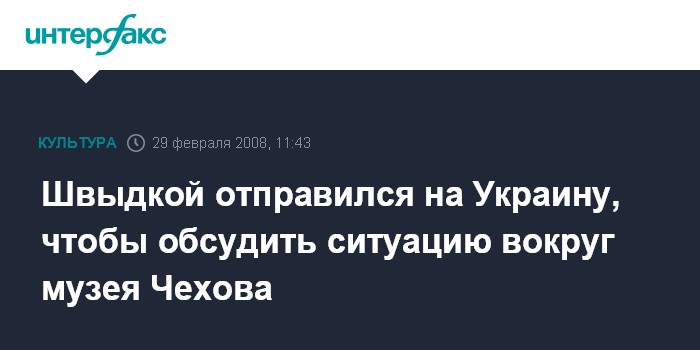 Москва. 29 февраля. INTERFAX.RU - Глава Роскультуры Михаил Швыдкой сегодня встретится с министром культуры и туризма Украины Василием Вовкуном, чтобы обсудить ситуацию вокруг дома-музея Антона Чехова в Ялте.