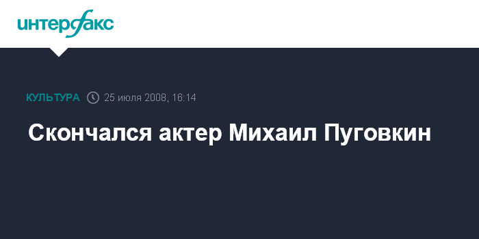 Москва. 25 июля. ИНТЕРФАКС - Скончался известный актер советского кино Михаил Пуговкин, сообщила в пятницу радиостанция "Эхо Москвы".