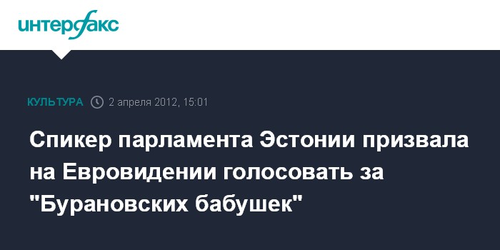 Таллин. 2 апреля. INTERFAX.RU - Председатель парламента Эстонии Эне Эргма призвала во время конкурса песен "Евровидение" голосовать за российскую группу "Бурановские бабушки".