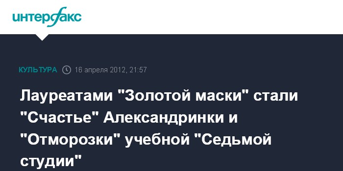 Лауреатами "Золотой маски" стали "Счастье" Александринки и "Отморозки" учебной "Седьмой студии"