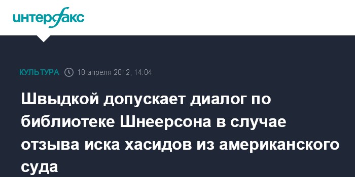 Швыдкой допускает диалог по библиотеке Шнеерсона в случае отзыва иска хасидов из американского суда