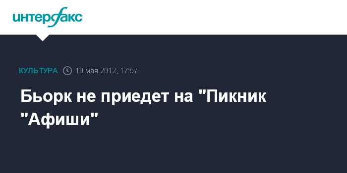 Москва. 10 мая. INTERFAX.RU – Исландская певица Бьорк отменила свое выступление на "Пикнике Афиши" 21 июля в Коломенском. По данным организаторов концерта, у певицы диагностировано воспаление связок, в связи с чем ей врачи рекомендовали ей некоторое время воздержаться от пения. Вместе с тем, устроители обещают гостям мероприятия "достойную замену" Бьорк.
