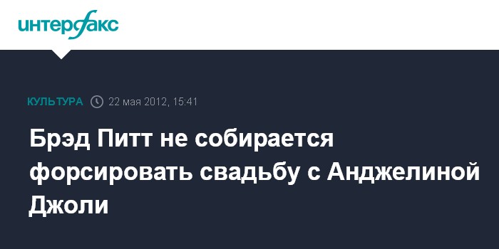 Канны. 22 мая. INTERFAX.RU - Известный голливудский актер Брэд Питт опроверг слухи о своей женитьбе на Анджелине Джоли в ближайшее время.