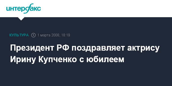 Президент РФ поздравляет актрису Ирину Купченко с юбилеем