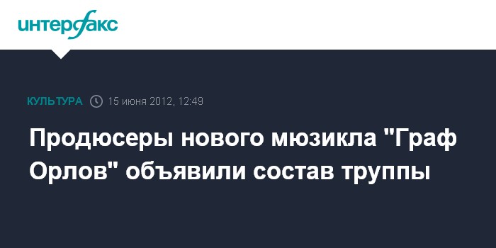 Продюсеры нового мюзикла "Граф Орлов" объявили состав труппы