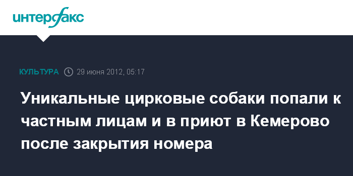Кемерово. 29 июня. ИНТЕРФАКС-СИБИРЬ - Ассистенты циркового номера борются за возрождение выступления с участием уникальных собак-артистов, которых после его закрытия Росгосцирком раздали частным лицам и приюту в Кемерово.