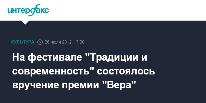 На фестивале "Традиции и современность" состоялось вручение премии "Вера"