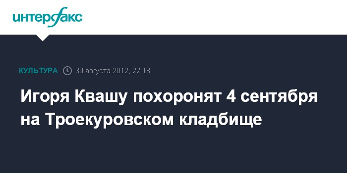 Игоря Квашу похоронят 4 сентября на Троекуровском кладбище