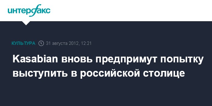 Москва. 31 августа. INTERFAX.RU – Всемирно известные британские рок-музыканты Kasabian приедут в Москву с концертом в поддержку своего нового альбома.