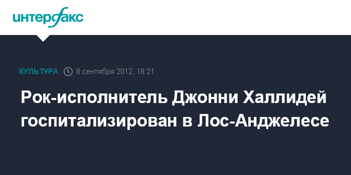 Париж. 6 сентября. INTERFAX.RU - Известный французский рок-певец Джонни Халлидей попал в больницу а Лос-Анджелесе, сообщает в четверг французский телеканал ТФ-1.