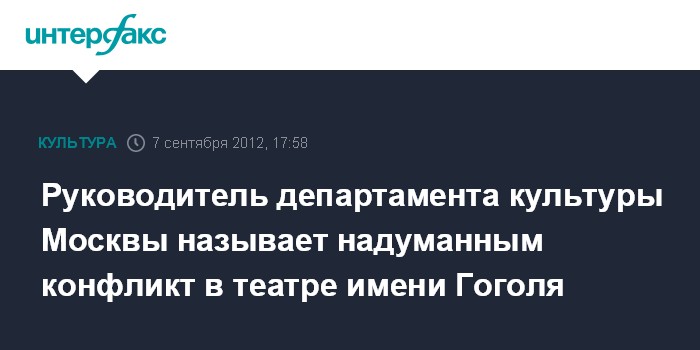 Руководитель департамента культуры Москвы называет надуманным конфликт в театре имени Гоголя
