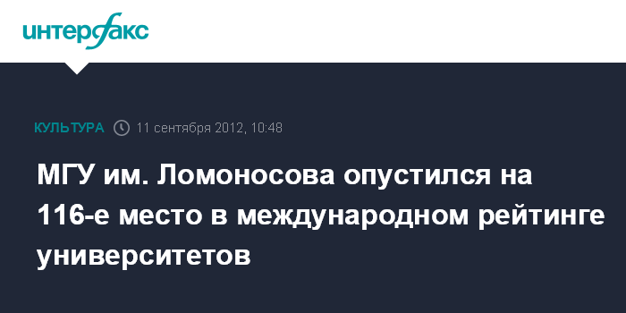Москва. 11 сентября. INTERFAX.RU - Московский государственный университет им. М. В. Ломоносова опустился на четыре позиции в опубликованном на этой неделе ежегодном рейтинге мировых университетов, составленном британской компанией Quacquarelli Symonds (QS). В перечне из 700 вузов МГУ занимает 116-е место.