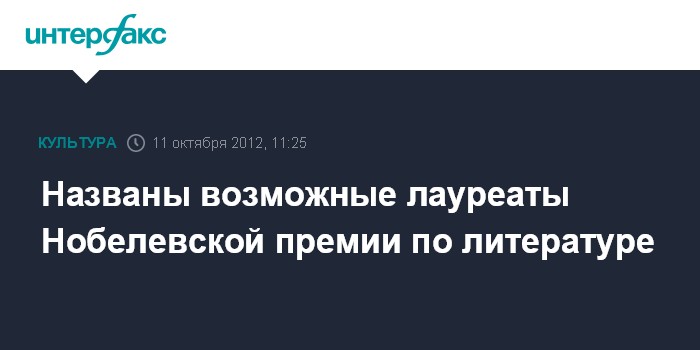 Стокгольм. 11 октября. INTERFAX.RU - Ряд шведских СМИ пытаются предугадать имена возможных лауреатов Нобелевской премии по литературе в 2012 году.