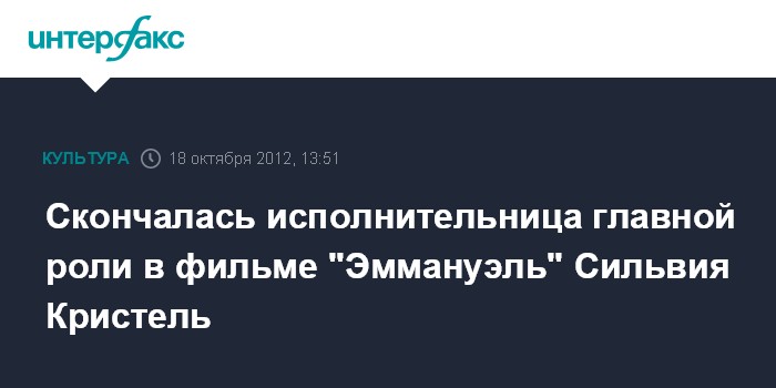 Париж. 18 октября. INTERFAX.RU - Нидерландская актриса Сильвия Кристель, прославившаяся благодаря исполнению главной роли в известном эротическом фильме "Эммануэль", скончалась в возрасте 60 лет, передают французские СМИ. По данным ее агента, актриса умерла в ночь на четверг, во сне.