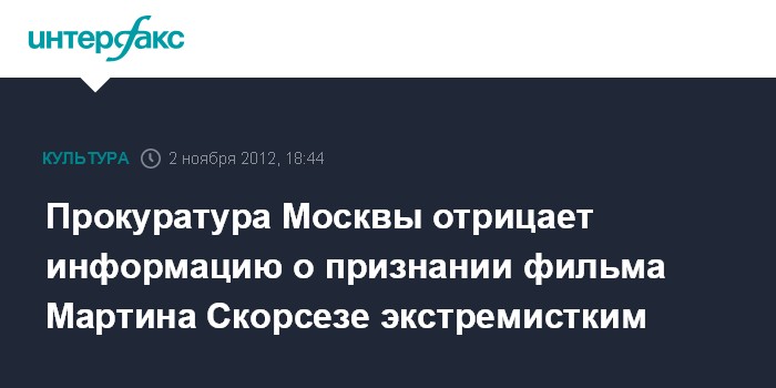 Прокуратура Москвы отрицает информацию о признании фильма Мартина Скорсезе экстремистким