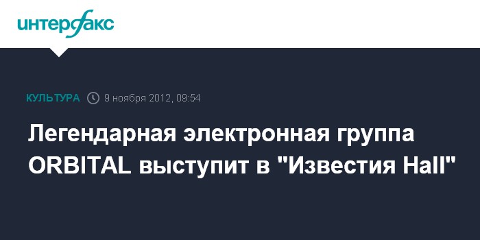 Легендарная электронная группа ORBITAL выступит в "Известия Hall"