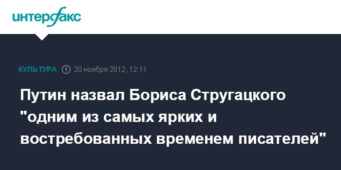 Москва. 20 ноября. INTERFAX.RU - Президент России Владимир Путин выразил соболезнования родственникам писателя Бориса Стругацкого в связи с его кончиной, сообщает во вторник пресс-службы главы государства.