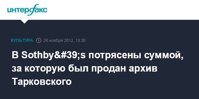 Лондон. 28 ноября. INTERAX.RU - В аукционном доме "Sothby's" считают, что ход торгов по продаже архива Андрея Тарковского свидетельствует о его исторической ценности.