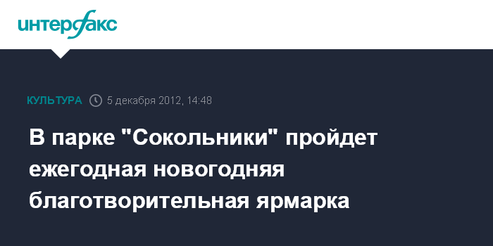 В парке "Сокольники" пройдет ежегодная новогодняя благотворительная ярмарка