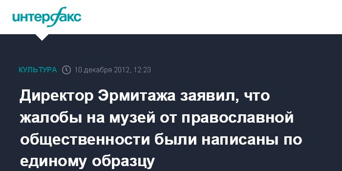 Директор Эрмитажа заявил, что жалобы на музей от православной общественности были написаны по единому образцу