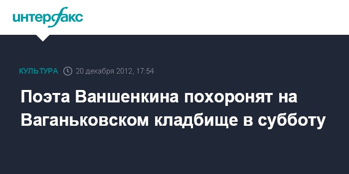 Москва. 20 декабря. INTERFAX.RU - Известного поэта, автора текста многих знаменитых советских песен Константина Ваншенкина, скончавшегося 15 декабря на 87-м году жизни, похоронят на Ваганьковском кладбище в Москве в ближайшую субботу.
