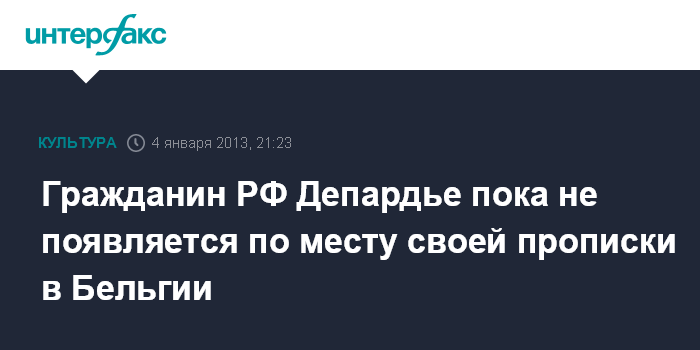 Гражданин РФ Депардье пока не появляется по месту своей прописки в Бельгии