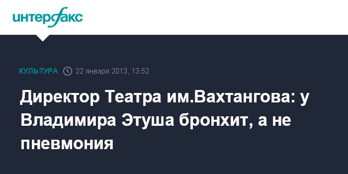 Директор Театра им.Вахтангова: у Владимира Этуша бронхит, а не пневмония